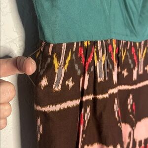 Anthropologie Diodore Elephant March Dress Fall Safari Indie Brown Pink Teal