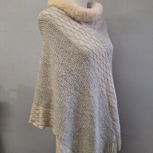 Anthropologie Do Everything In Love Poncho One Size Faux Fur Collar Knit Fringe