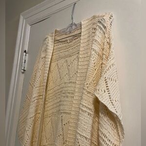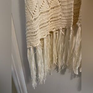 Anthropologie Do Everything in Love Cream Crochet Fringe Shawl Sweater One Size