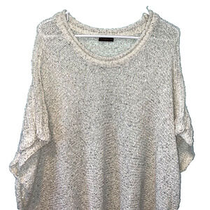 The Anthropologie Do Everything in Love Poncho Sweater is a cream-colored, open-knit sweater made of lightweight acrylic material. It features kimono sleeves, a scoop neck, and pom pom accents. This relaxed-fit poncho sweater is perfect for various occasions, including travel, weddings, parties, casual wear, and workwear. It is machine washable and suitable for fall, winter, and spring seasons. The sweater is one size and has a bohemian and classic theme.