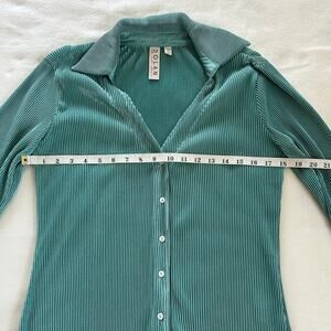 Anthropologie Dolan Accordion Bell Sleeve Hem Button Down 70s Blouse Size XS