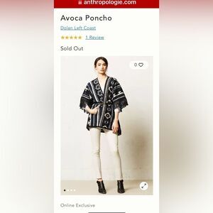 Anthropologie Dolan Avoca Poncho Open Front One Size Blue Black Fringe in good condition