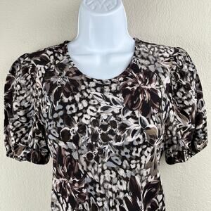 Anthropologie Dolan Black Multi Floral Pullover Short Sleeve Midi Dress Small