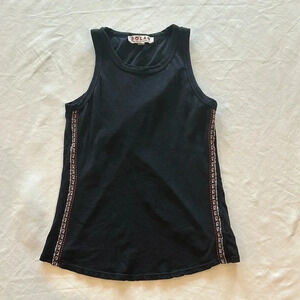 Anthropologie Dolan Black Tank Western Embroidery Tulip Open Back petite XS EUC