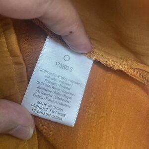 Material: Front and sleeves are 100% polyester; back is 95% rayon, 5% spandex (see tag in photos).