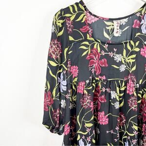 Anthropologie Dolan Cherie Floral Satin Babydoll Blouse XS Black
