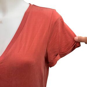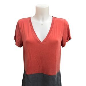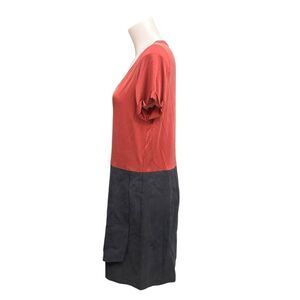 Anthropologie Dolan Colorblock Short Sleeve V Neck Shirt Dress Medium Rust/Gray