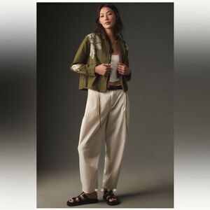 Anthropologie Dolan Embroidered Utility Jacket Olive Green Sz XS Military Boho