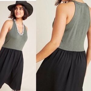 Anthropologie Dolan Fabiana Knit Dress Tank V-Neck Sleeveless Green Black Small