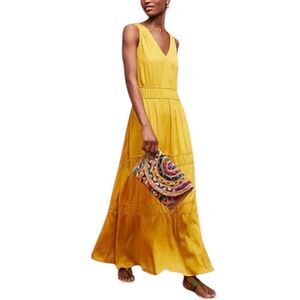 Anthropologie Dolan Goldenrod Boho Tiered Sleeveless Maxi Dress Yellow Mustard M