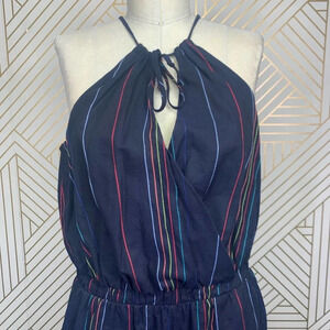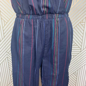 Anthropologie Dolan Jumpsuit Cropped Striped Halter Navy Blue Rainbow Size Small