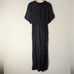 This stunning black sheath maxi dress by Dolan is perfect for a cocktail night out. It features a flattering v-neckline and elegant short flutter sleeves, offering a sophisticated and chic look.