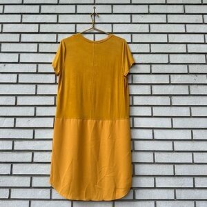 Anthropologie dress, Dolan Left Coast dress, Loren tunic, mustard yellow dress, goldenrod dress, casual shift dress, pocket dress, jersey tunic, scoop neck short sleeve dress, hi-low hem dress, summer dress, fall transition dress, everyday dress, streetwear dress, minimalist style, mod style, retro-inspired dress, academia fashion, indie sleaze, boho chic, effortless cool, artsy dress, vintage-inspired, modern casual, weekend outfit, work-from-home style, Y2K revival, cozycore, corpcore, closet staple