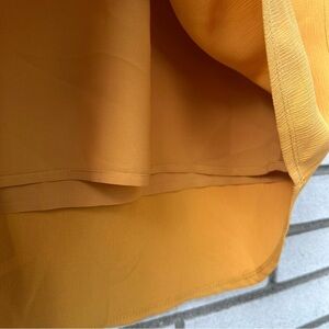 From Anthropologie’s Dolan Left Coast Collection, the Loren tunic dress is an effortlessly chic piece in a rich mustard yellow hue. Designed with a soft cupro-blend jersey top and textured woven contrast bottom, it features a scoop neckline, short sleeves, and two handy front pockets. The relaxed shift silhouette and hi-low hemline make it easy to dress up or down—pair it with sneakers for casual days or layer with a jacket and boots for a modern streetwear look. Lined for comfort. Size Medium.