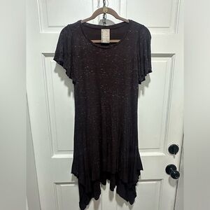 Comfortable, stylish and versatile Anthro dress that can be dressed up or down features an A-line silhouette, short split fluttery sleeves, beautiful drape, and an asymmetrical hem. 97% viscose, 3% wool with rayon-blend lining. Color is a heathered purple with gray flecks - the fabric is so pretty! Excellent condition - no flaws.