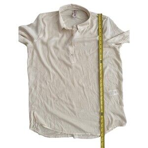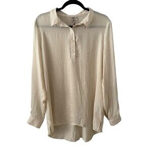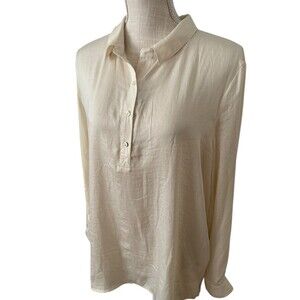 This Anthropologie Dolan Left Coast blouse is perfect for any casual or business occasion. The oversized design with a split neckline and 3-button front closure provides a relaxed fit, making it comfortable for all-day wear. The blouse is made of chiffon fabric and features a solid cream color, long sleeves, and a point collar style.