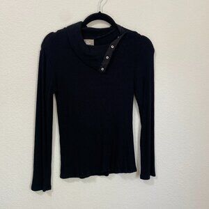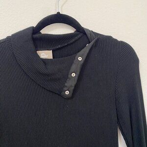 Anthropologie Dolan Left Coast Ribbed Snap Neck Turtleneck Black Size Small
