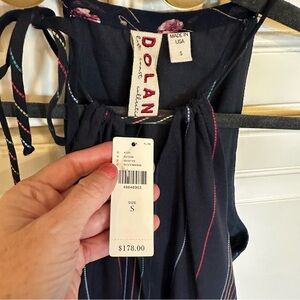 Anthropologie - Dolan Left Coast Women’s Navy Embroidered Rainbow Striped Halter Cotton Pants Jumpsuit