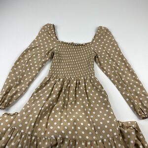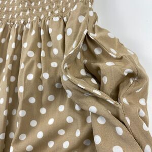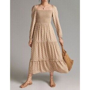 Anthropologie Dolan Left Coast Womens Smocked Midi Polka Dot Dress Small Beige