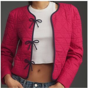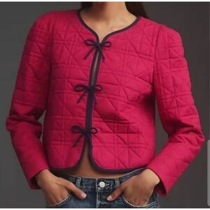 Anthropologie Dolan Linen Bow Front Quilted Lady Jacket Size Medium NWT