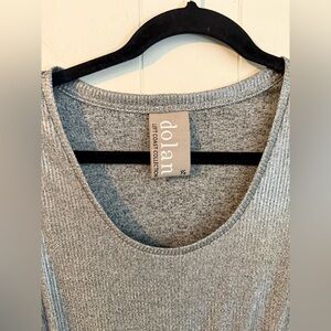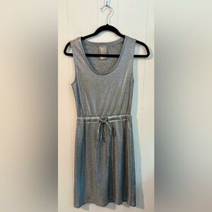 Anthropologie Dolan Metallic Silver Drawstring Ribbed Midi Dress, Size XS