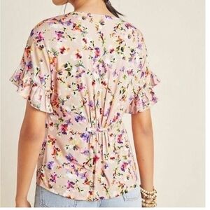 Anthropologie Dolan Mitzi Pleated Floral Blouse Dusty Rose Size XS