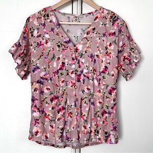 Anthropologie Dolan Mitzi Pleated Floral Blouse Dusty Rose