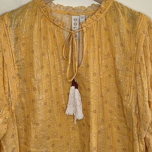 Anthropologie Dolan | Mustard Metallic Yellow Cotton Popover Blouse.