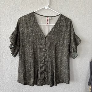 Anthropologie Dolan Olive Green Short Sleeve Ruffle Blouse Top Size Petite Small
