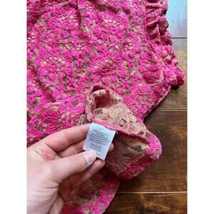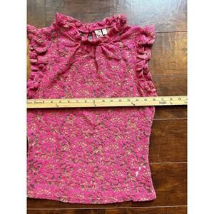 Anthropologie Dolan Pink Lace High Neck Sleeveless Sheer Top Size Small