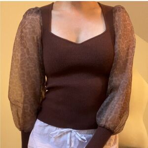 Anthropologie Dolan Puff Sleeve Sweater – Animal Print Sleeves XXSP (Fits XS/S)