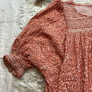 Anthropologie Dolan Rebecca dot smocked short sleeve top. This top is in great used condition