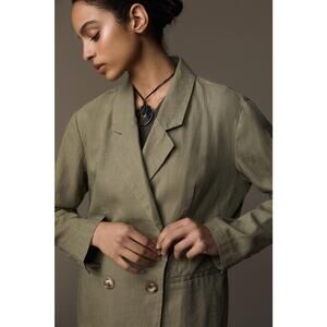 Anthropologie Dolan Slouchy Textured Linen Double Breasted Blazer Green Medium