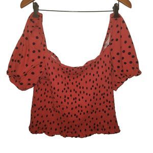 Anthropologie Dolan Top Polka Dot Smocked Shirt Red BlacK Puff Sleev Size XL