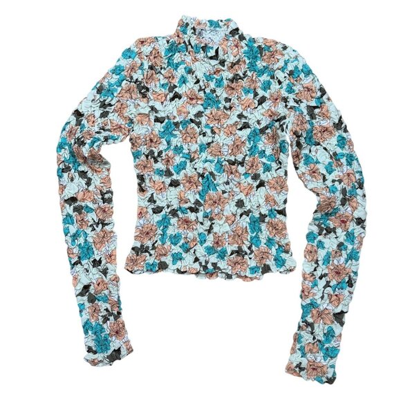 Anthropologie Dolan Top Small Pebble Smocked Left Coast Floral Turtleneck XXS
