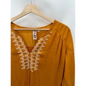 Anthropologie Dolan Top Women MEDIUM Orange Alvia V-Neck Embroidered Tunic