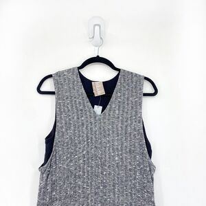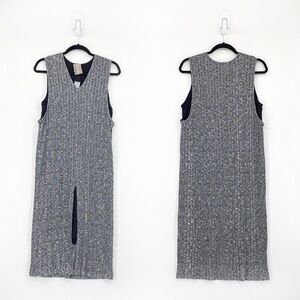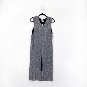 Details: Anthropologie Dolan Women L P Petite Layered Luna Dress Gray Midi Knit Slit Ribbed NEW