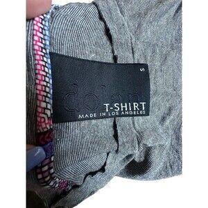 Elevate your wardrobe with this Anthropologie Dolan tee, perfect for any casual occasion. The round neckline and long sleeves, in micro stripes, provide a classic and bohemian style, while the cropped accent and pockets add a touch of modernity. The tee, in a soft Rayon blend, is a regular fit and comes in size small. Its multicolor tones are perfect for the outdoors, California, and city life, making it a must-have piece for any wardrobe. Good preowned condition.