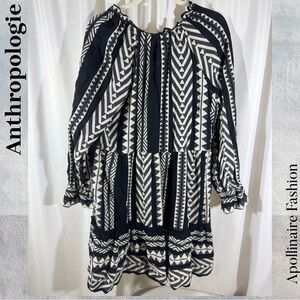 Anthropologie Dominique Tunic Dress in Black White Patterns Medium New