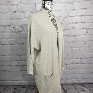 This is a women's brand new with tags long sleeve open front stretch knit relaxed fit size OS cardigan that is made by Donni and has pockets.