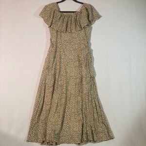 Anthropologie Dress 4 Cheetah Fit/Flare Full Button Flutter Sleeve Cottagecore