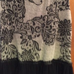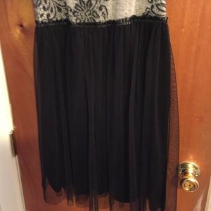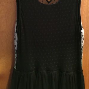 Purchased from Anthropologie, top of dress is wool sweater material while the back is a shear material with polka dots, skirt is tulle with solid black lining underneath, falls above the knee, worn once for New Years, beautiful dress but I never wear it!