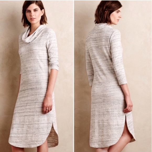 Saturday Sunday Anthropologie Cowl Sweater Dress. It is grey with texture, 3/4 sleeves and side slits. Size small. Super cute with tights for winter!