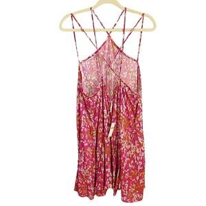 Crafted from breathable rayon, this airy piece features a crisscross halter neckline, strappy open back, and a sheer unlined silhouette that drapes softly for a flattering fit. Its vibrant pink abstract print adds a playful pop of color, perfect for beach vacations, poolside parties, or casual weekend brunches.