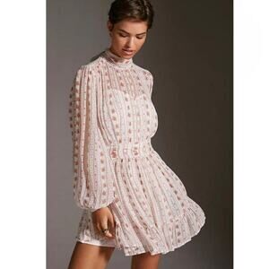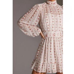 Anthropologie Sheer Mock Neck Mini Dress Medium