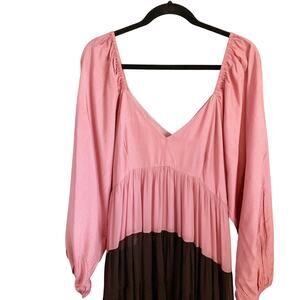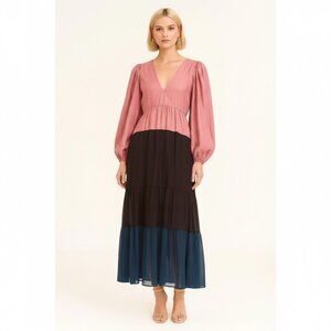 Anthropologie Nirmooha Puff-Sleeved Colorblocked Maxi Dress
