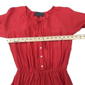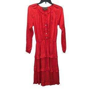 Anthropologie Dress Size Small Red Boho Western Sunday in Brooklyn Tiered Ruffle
