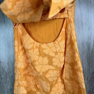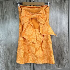 Anthropologie Dress Sz 0 Large Bow Open Back Sleeveless Textured Orange