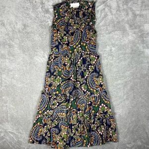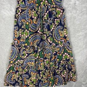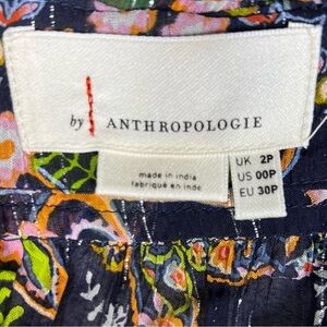Anthropologie Dress Womens 00P Elmira Ruffle Shimmer Boho Paisley Colorful Midi