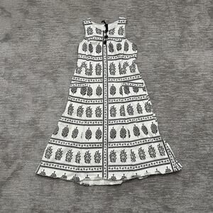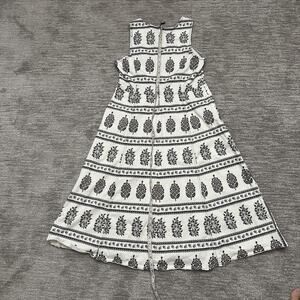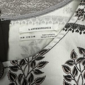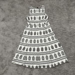 Anthropologie Dress Womens 16 White Black Sleeveless A-Line Midi Floral Zip Back
